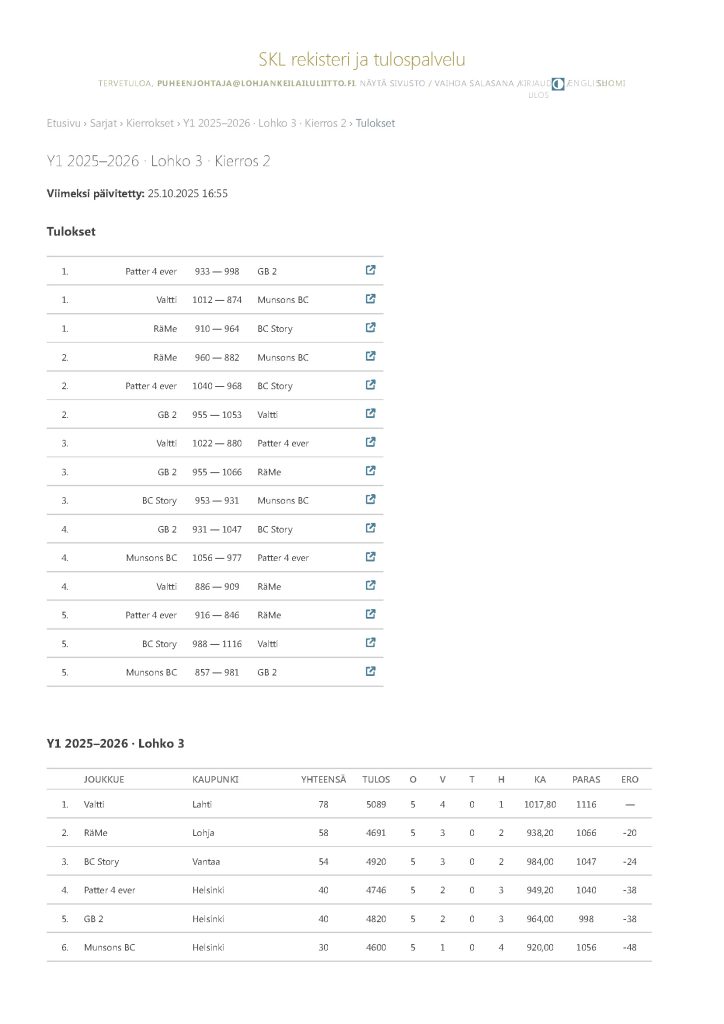 VS Y1 kierros Lohjalla 25.10.2025 25/10/2025 | Ei kommentteja Tässä alla kokonaistilanne 2:n kierroksen jälkeen 25.10.2025 Categories: Uncategorized