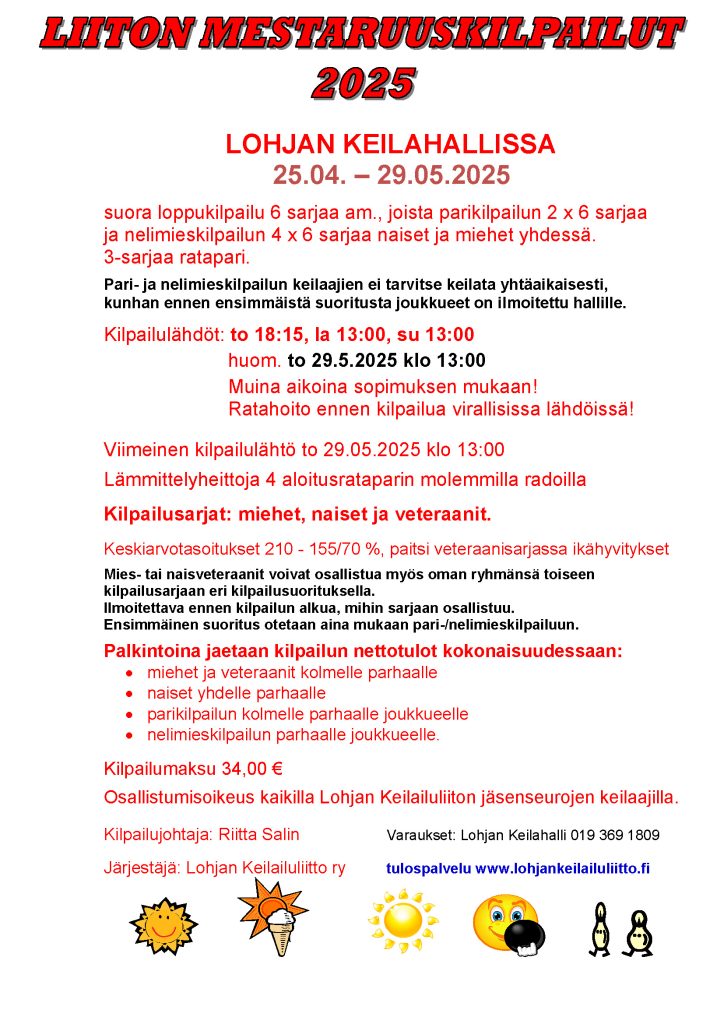 Liiton mestaruuskilpailut 2025 06/05/2025 | Ei kommentteja Kilpailusarjat: Naiset Miehet Veteraanit Joukkueet Categories: Uncategorized